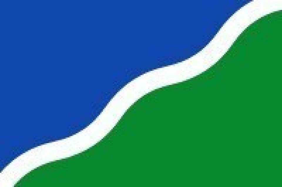 Drapeau de Lasne 30/04/1999 Symbolisme : La couleur bleue symbolise le ciel, le vert représente l'environnement naturel de la commune. La ligne ondulée blanche symbolise la rivière Lasne.
